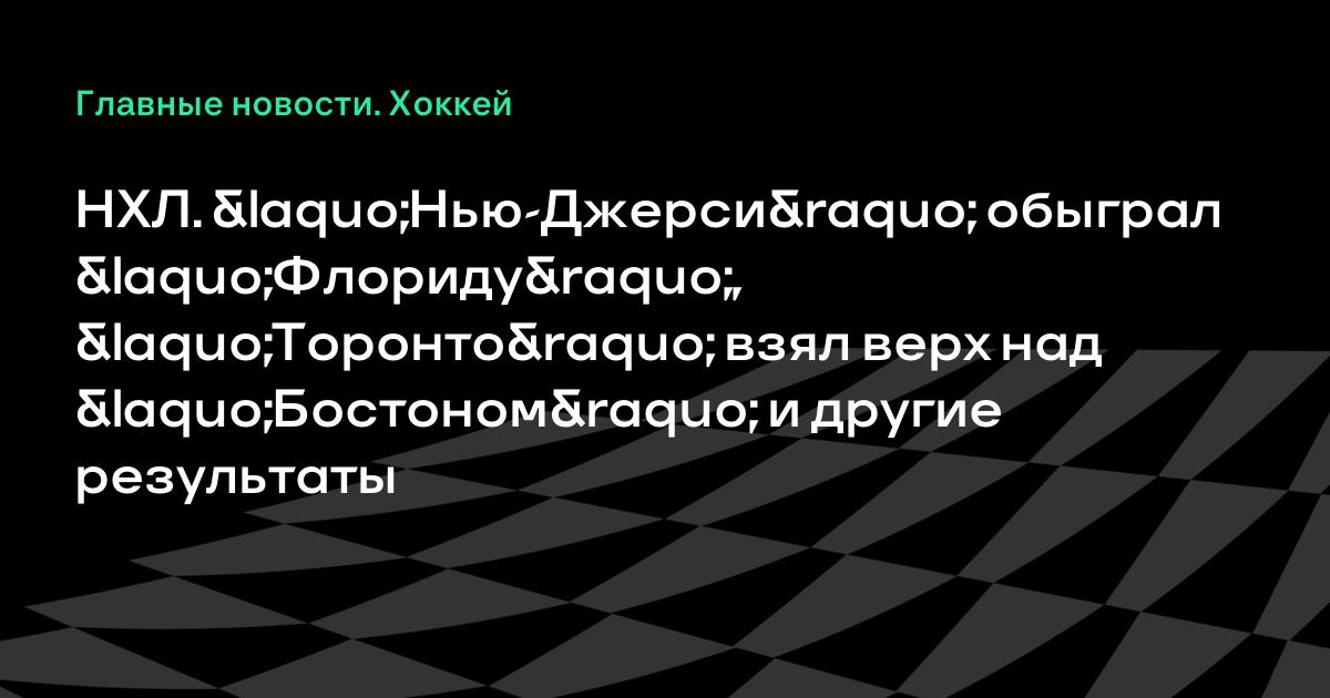 НХЛ. «Нью-Джерси» обыграл «Флориду», «Торонто» взял верх над «Бостоном» и другие результаты