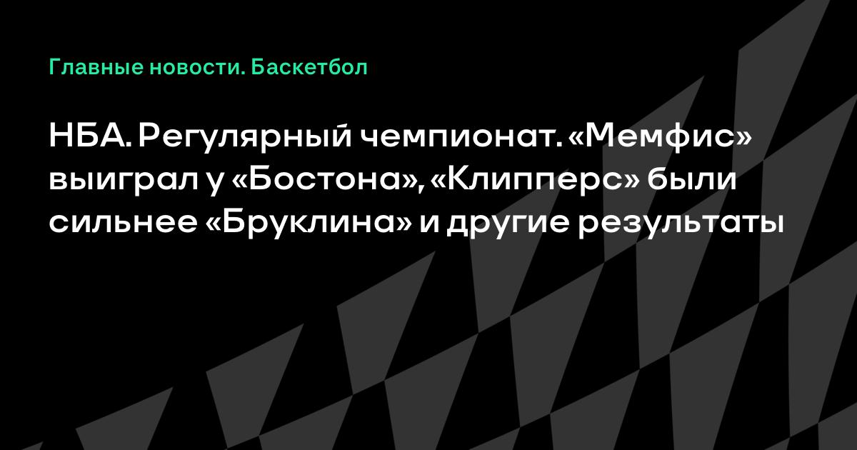 НБА. Регулярный чемпионат. «Мемфис» выиграл у «Бостона», «Клипперс» были сильнее «Бруклина» и другие результаты