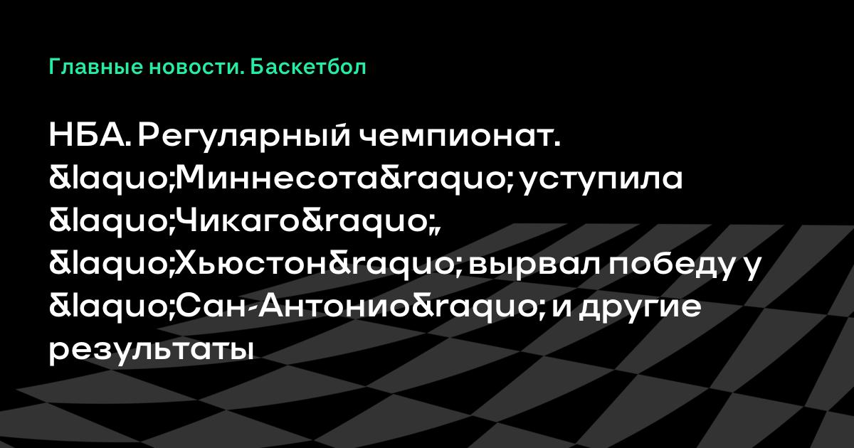 НБА. Регулярный чемпионат. «Миннесота» уступила «Чикаго», «Хьюстон» вырвал победу у «Сан-Антонио» и другие результаты
