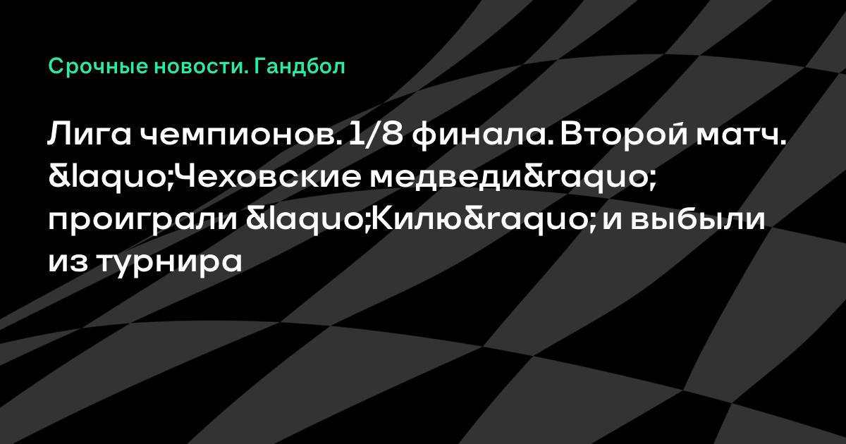 «Чеховские медведи» во втором матче 1/8 финала гандбольной Лиги чемпионов уступили немецкому «Килю» (26:30) и выбыли из турнира. Первая игра завершилась победой российского клуба на домашней площадке (37:35).