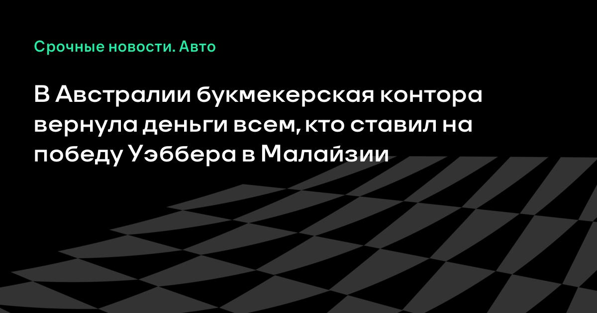 Одна из австралийских букмекерских контор решила вернуть деньги всем, кто поставил на победу австралийского пилота «Ред Булл» Марка Уэббера на Гран-при Малайзии. Напомним, что гонщик не смог победить в этой гонке после того как его напарник Себастьян Феттель проигнорировал указания команды и обогнал Уэббера.