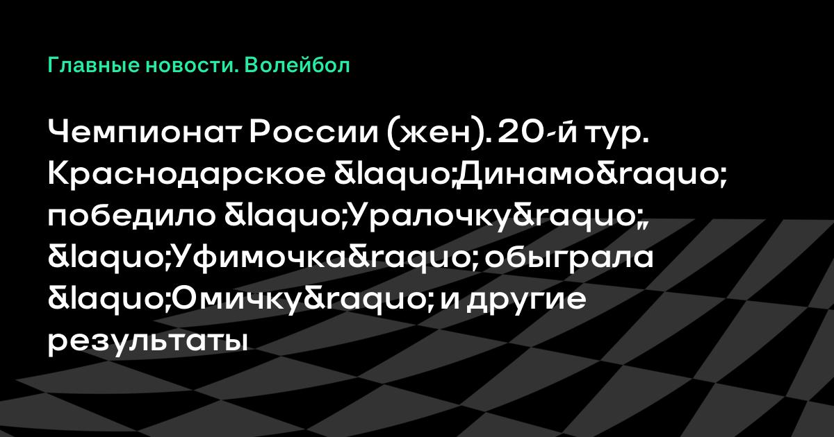 Чемпионат России (жен). 20-й тур. Краснодарское «Динамо» победило «Уралочку», «Уфимочка» обыграла «Омичку» и другие результаты