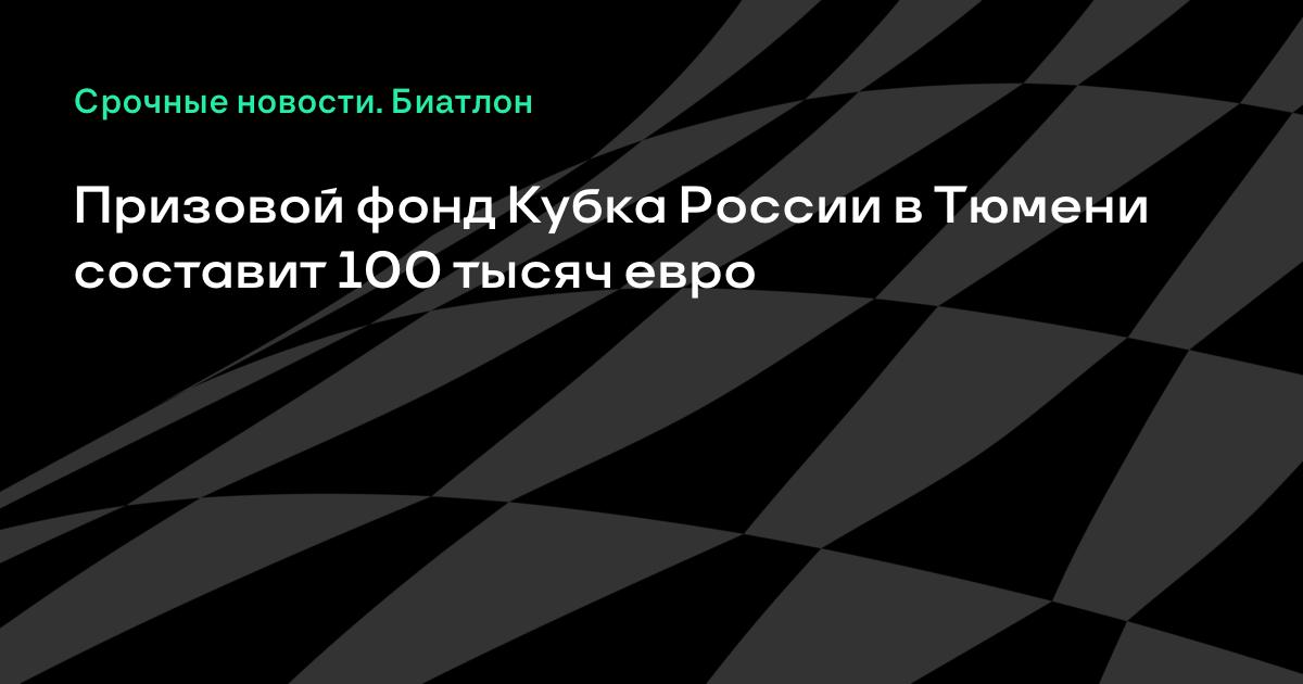 Призовой фонд Кубка России в Тюмени составит 100 тысяч евро