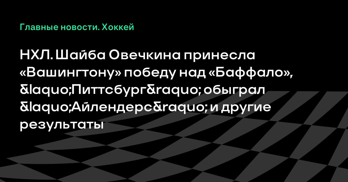 НХЛ. Шайба Овечкина принесла «Вашингтону» победу над «Баффало», «Питтсбург» обыграл «Айлендерс» и другие результаты