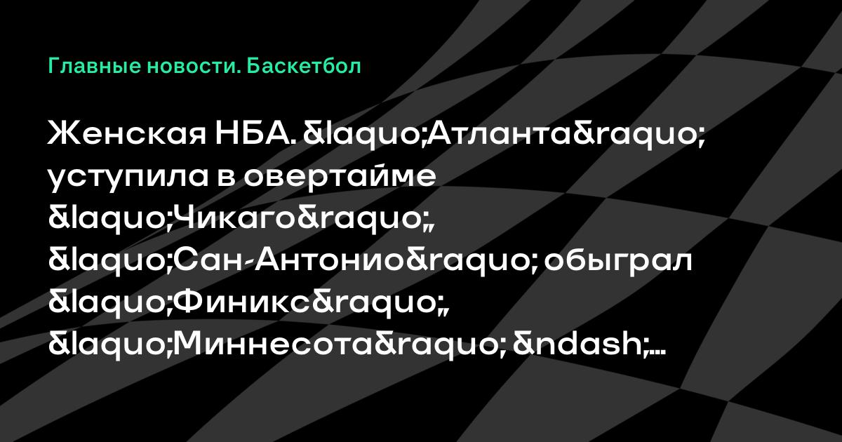 Женская НБА. «Атланта» уступила в овертайме «Чикаго», «Сан-Антонио» обыграл «Финикс», «Миннесота» – «Нью-Йорк»