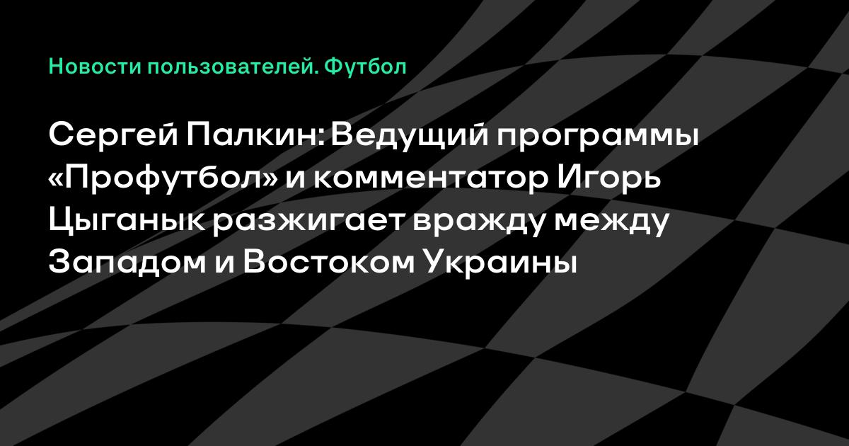 Сергей Палкин: Ведущий программы «Профутбол» и комментатор Игорь Цыганык разжигает вражду между Западом и Востоком Украины
