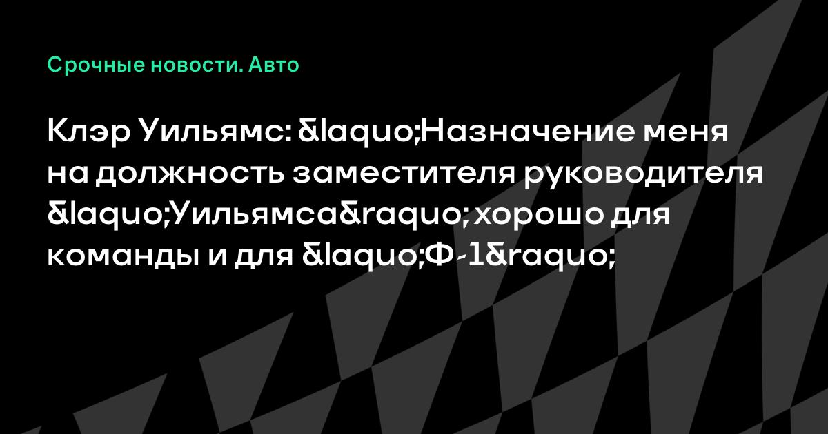 Посмотрим, насколько хорошо я буду работать в новой роли, ноя бы хотела думать, что буду полезна для команды. Уникальная черта «Уильямса» – это то, что мы семейная команда, поэтому важно сохранить этот элемент семьи. Поэтому назначение меня на эту должность – это хорошо для команды и для «Формулы-1», – цитирует Клэр Уильямс Planet F1 со ссылкой на BBC Radio 4.