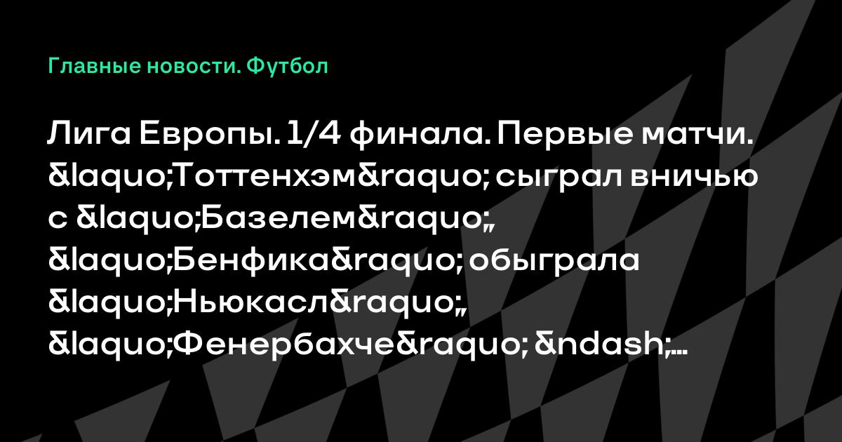 Лига Европы. 1/4 финала. Первые матчи. «Тоттенхэм» сыграл вничью с «Базелем», «Бенфика» обыграла «Ньюкасл», «Фенербахче» – «Лацио»