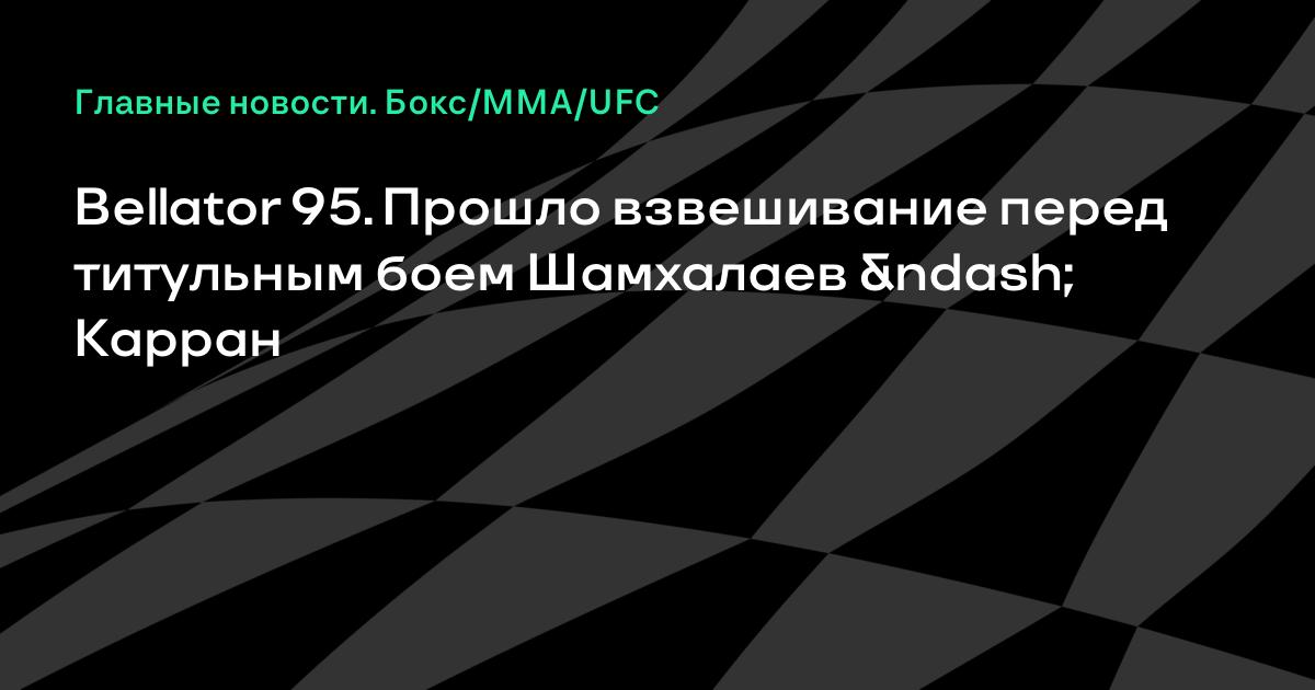 В США прошло взвешивание участников шоу Bellator 95, главным событием которого станет бой за чемпионский титул организации в полулегком весе между его обладателем Пэттом Карраном (США) и победителем Гран-при Шахбулатом Шамхалаевым (Россия).