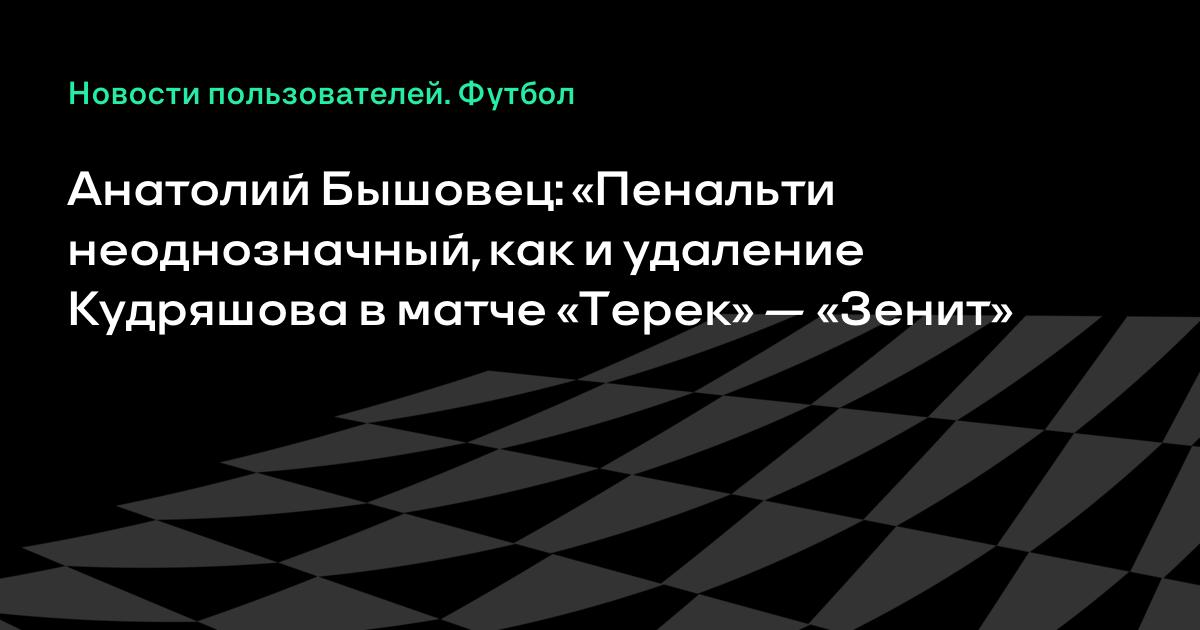 Анатолий Бышовец: «Пенальти неоднозначный, как и удаление Кудряшова в матче «Терек» — «Зенит»