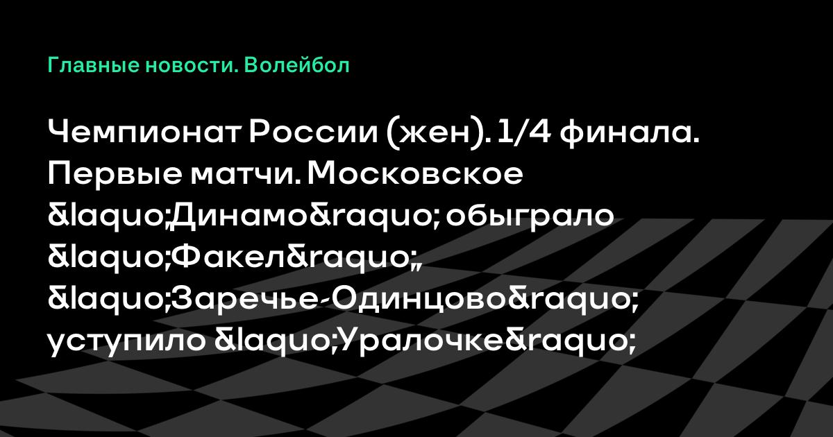 Сегодня прошли первые матчи 1/4 финала женского чемпионата России по волейболу. Московское «Динамо» обыграло «Факел» (3-2), «Заречье-Одинцово» крупно уступило «Уралочке» (0-3).