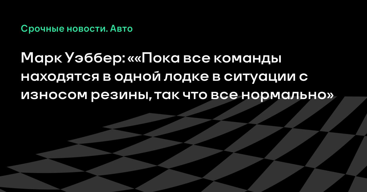 «Пока мы все находимся в одной лодке в ситуации с износом резины, так что все нормально. Если только у вас возникают проблемы, то это определенно должно вызывать беспокойство. Но мы не единственные, у кого есть проблемы. Заставить работать эти покрышки нелегко, так что мы должны продолжать работу, добиться прогресса в этом вопросе. Вечером мы изучим все полученные данные, и подумаем, как сможем справиться с ситуацией в условиях гонки», – цитирует Уэббера ESPN F1.