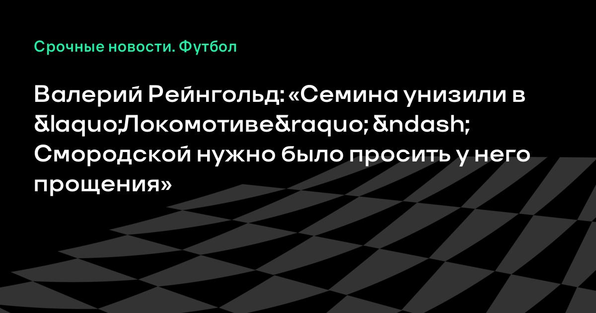 Валерий Рейнгольд: «Семина унизили в «Локомотиве» – Смородской нужно было просить у него прощения»