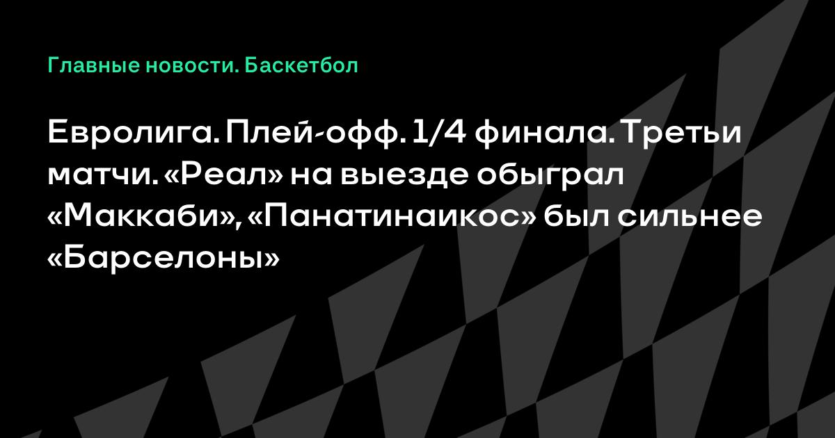 Евролига. Плей-офф. 1/4 финала. Третьи матчи. «Реал» на выезде обыграл «Маккаби», «Панатинаикос» был сильнее «Барселоны»