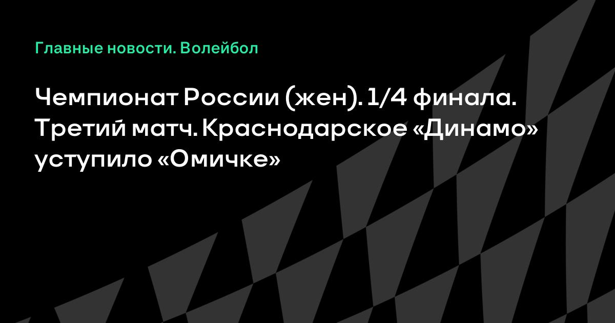 Сегодня в 1/4 финала женского чемпионата России по волейболу прошел решающий матч серии между краснодарским «Динамо» и «Омичкой», который завершился победой гостей (1-3). Напомним, что «Уралочка», казанское и московское «Динамо» обеспечили себе выход в полуфинал.