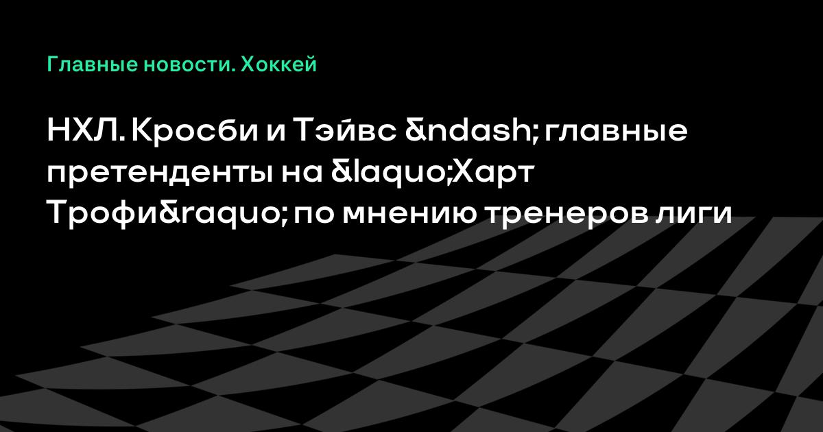 НХЛ. Кросби и Тэйвс – главные претенденты на «Харт Трофи» по мнению тренеров лиги