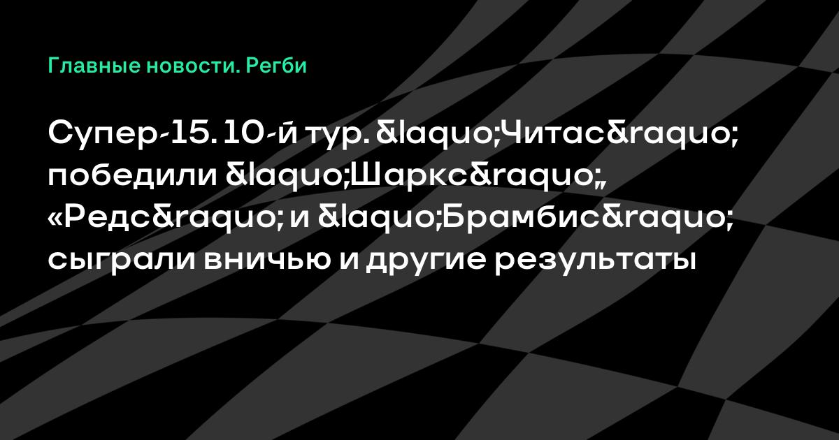 Сегодня завершился 10-й тур регбийного турнира Супер-15. Отметим гостевую победу «Читас» над «Шаркс» (6:12), лидеры австралийской конференции «Брамбис» и «Редс» сыграли вничью (19:19).