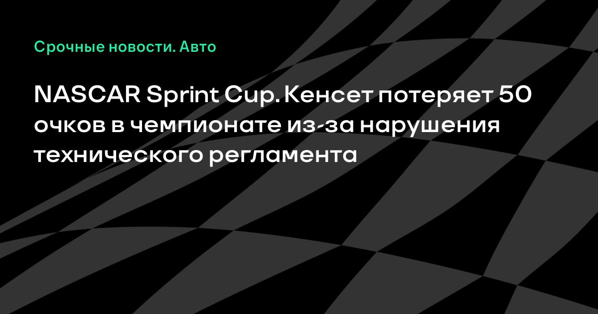 Выигравший на прошлой неделе в Канзасе вторую гонку в сезоне Мэтт Кенсетт будет лишен 50-ти очков в чемпионате в связи с тем, что двигатель на его автомобиле не прошел техническую проверку и оказался легче, чем того требует регламент.