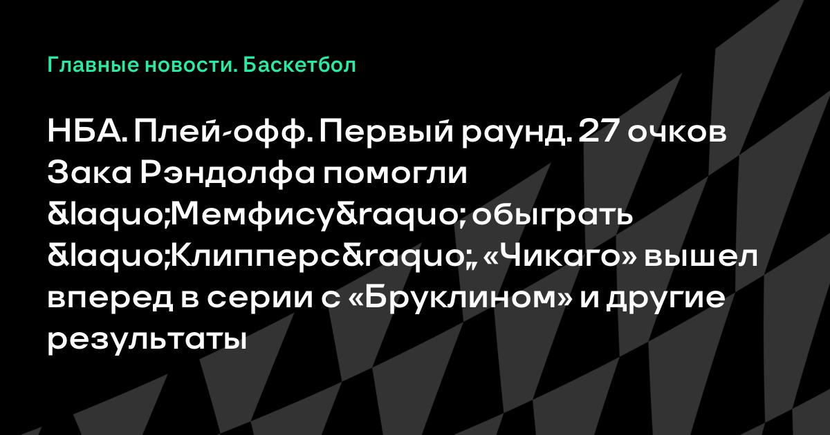 НБА. Плей-офф. Первый раунд. 27 очков Зака Рэндолфа помогли «Мемфису» обыграть «Клипперс», «Чикаго» вышел вперед в серии с «Бруклином» и другие результаты