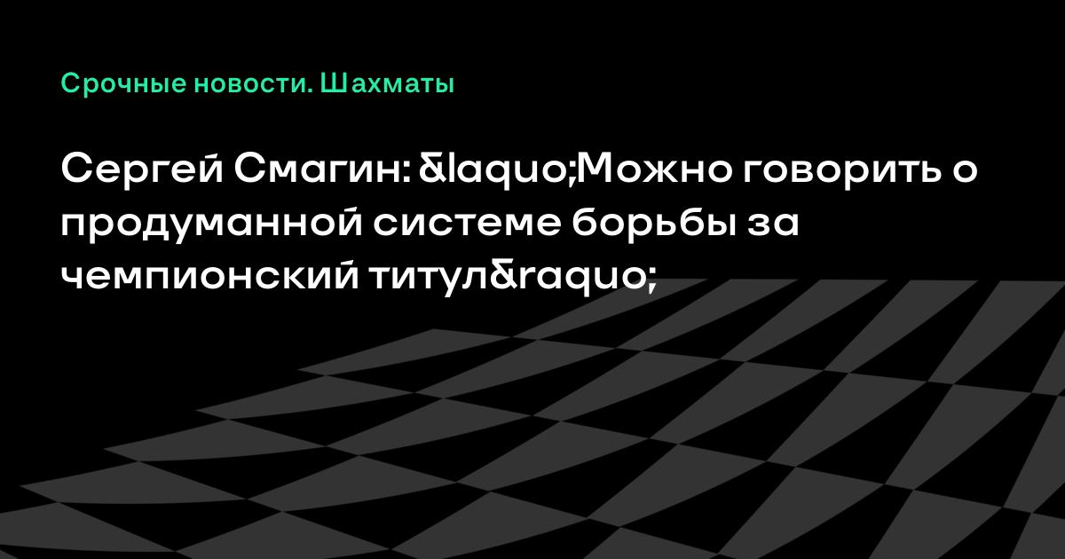 Международная шахматная федерация выстроила четкую систему определения чемпиона мира. Все шахматисты довольны. У них появилась возможность планировать свой график выступлений в течение года. Причем эта схема применяется уже второй раз подряд. Так что можно говорить о продуманной системе борьбы за чемпионский титул», – приводит слова Смагина ИТАР-ТАСС.