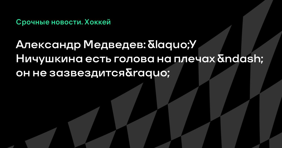 Александр Медведев: «У Ничушкина есть голова на плечах – он не зазвездится»