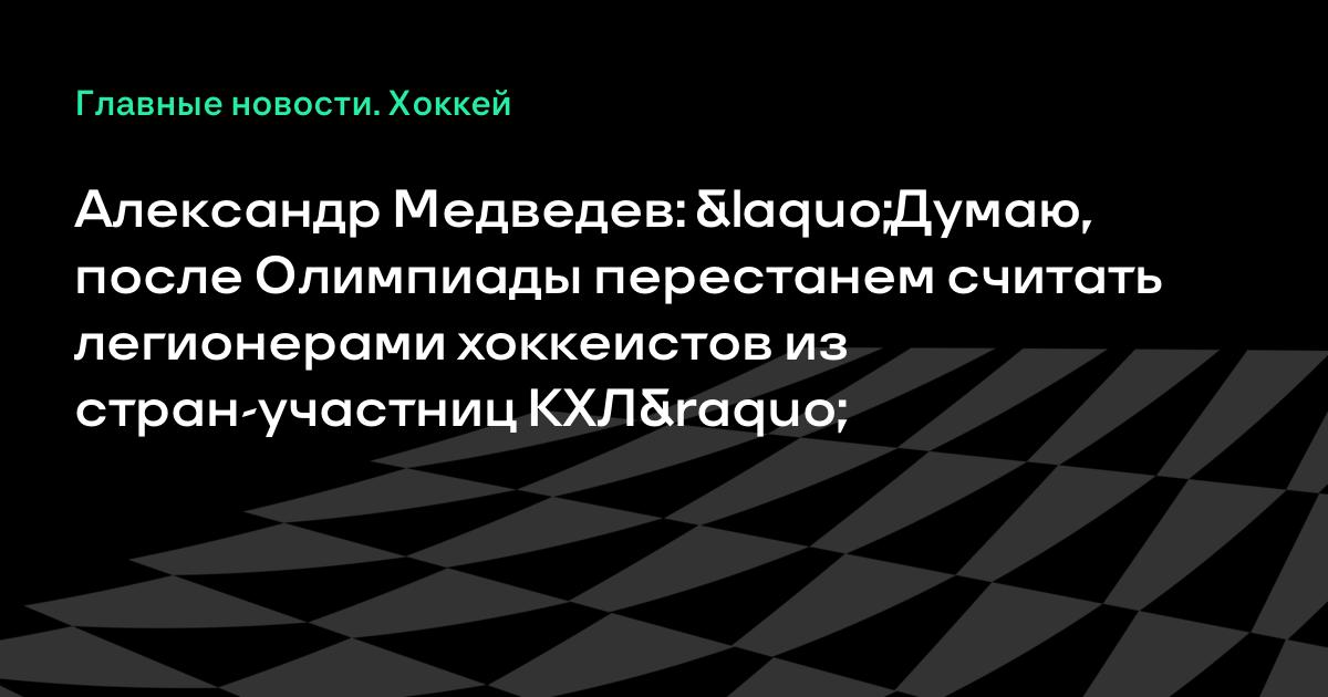 Думаю, после Олимпиады мы перестанем считать легионерами хоккеистов и тренеров из стран, чьи команды играют в КХЛ», — сказал Медведев «КХЛ-ТВ».