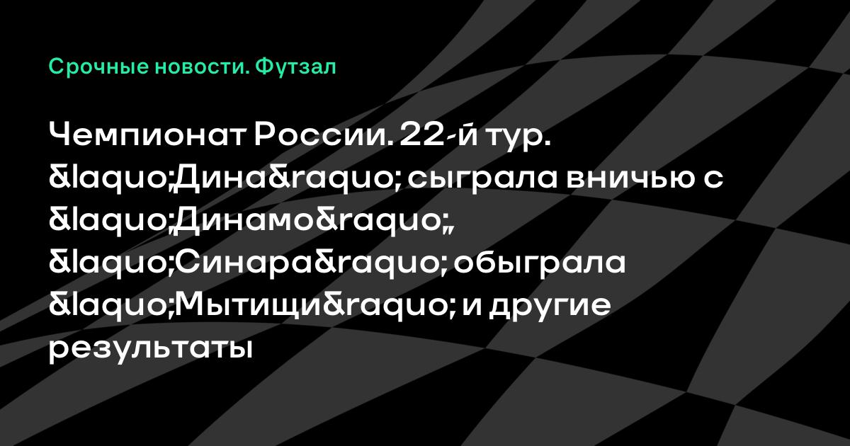 Сегодня прошли матчи 22-го тура чемпионата России. «Дина» сыграла вничью с «Динамо» (3:3), «Синара» обыграла «Мытищи» (5:2).