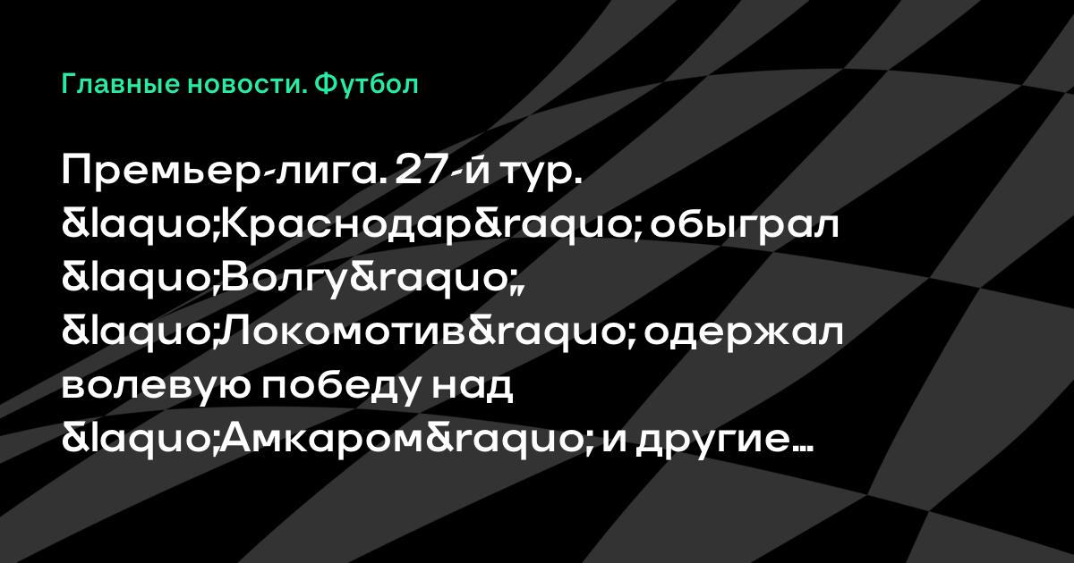 Премьер-лига. 27-й тур. «Краснодар» обыграл «Волгу», «Локомотив» одержал волевую победу над «Амкаром» и другие результаты