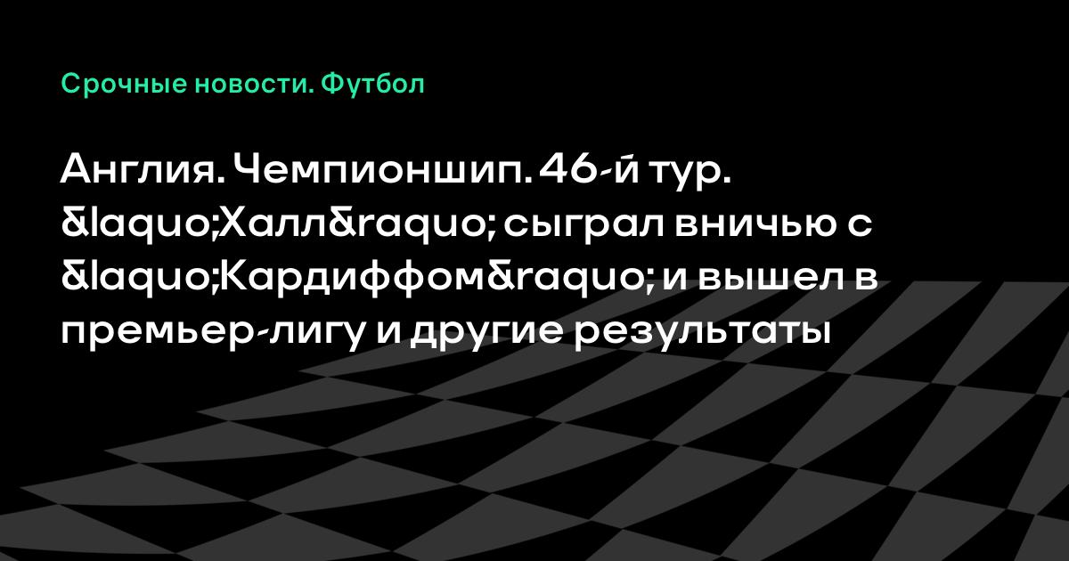 Англия. Чемпионшип. 46-й тур. «Халл» сыграл вничью с «Кардиффом» и вышел в премьер-лигу и другие результаты