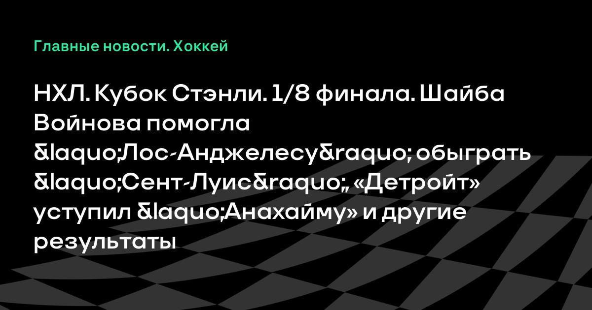НХЛ. Кубок Стэнли. 1/8 финала. Шайба Войнова помогла «Лос-Анджелесу» обыграть «Сент-Луис», «Детройт» уступил «Анахайму» и другие результаты