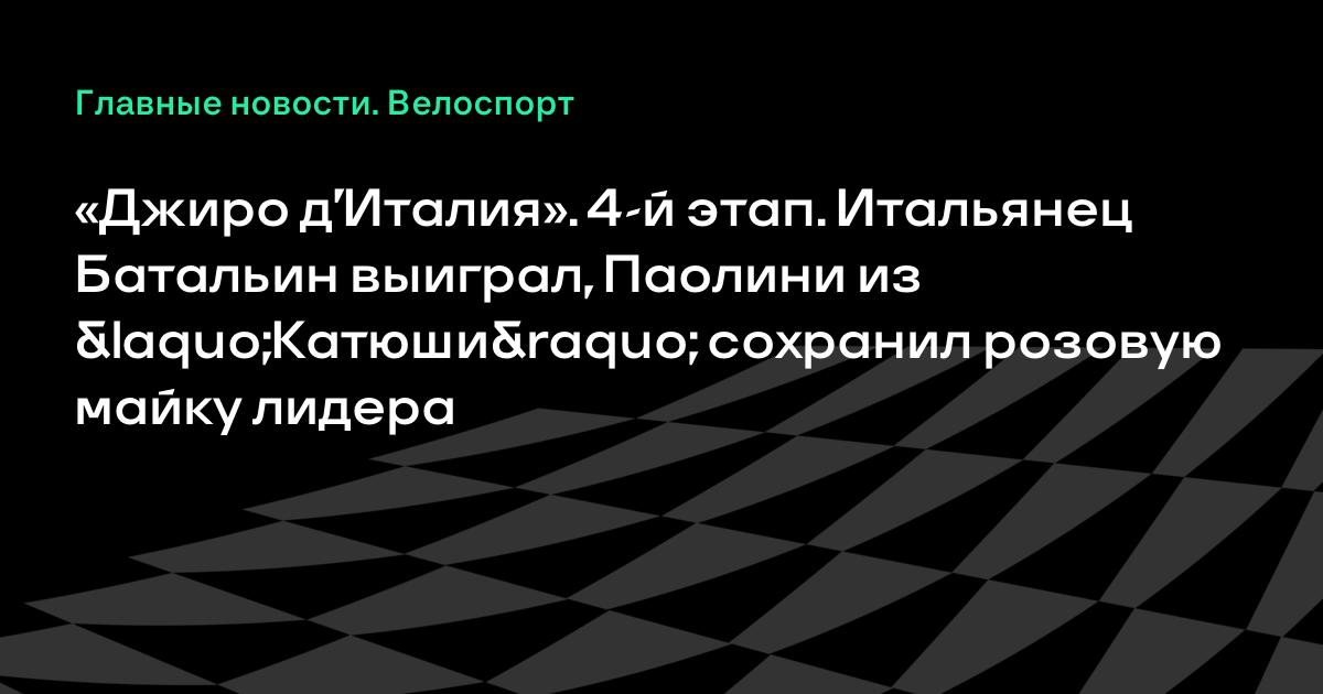 «Джиро д’Италия». 4-й этап. Итальянец Батальин выиграл, Паолини из «Катюши» сохранил розовую майку лидера