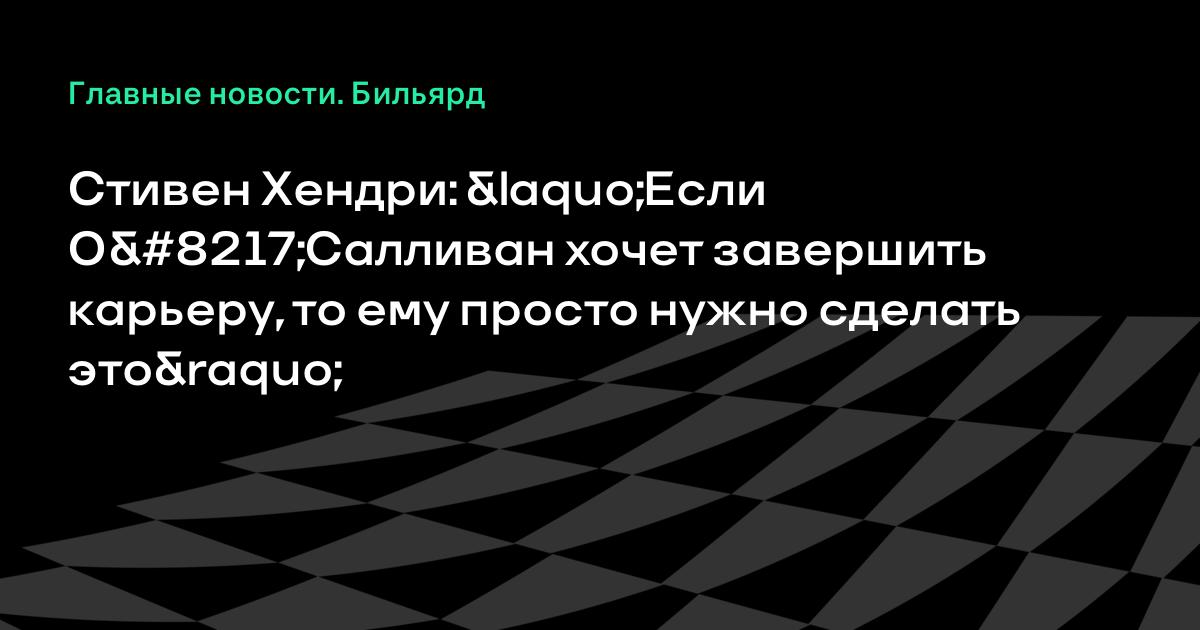 Если он действительно хочет завершить карьеру, то ему просто нужно сделать это. Но снукеру нужен его лучший игрок», – приводит слова Хендри BBC.