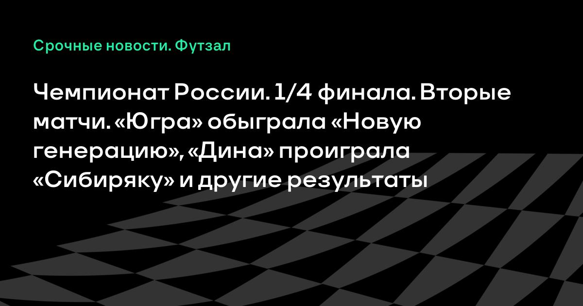 Чемпионат России. 1/4 финала. Вторые матчи. «Югра» обыграла «Новую генерацию», «Дина» проиграла «Сибиряку» и другие результаты