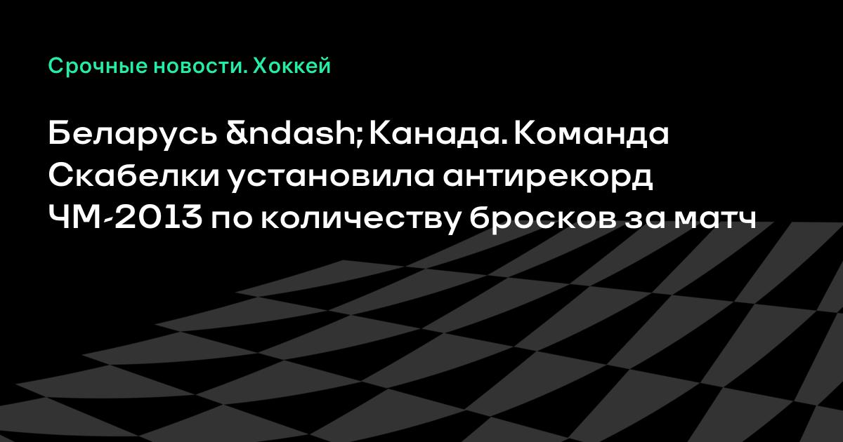 Сборная Беларуси, проиграв команде Канады (1:4), установила антирекорд по количеству бросков за матч на ЧМ-2013. Команда Андрея Скабелки в створ ворот канадцев, которые защищал Деван Дабник, бросила 10 раз.