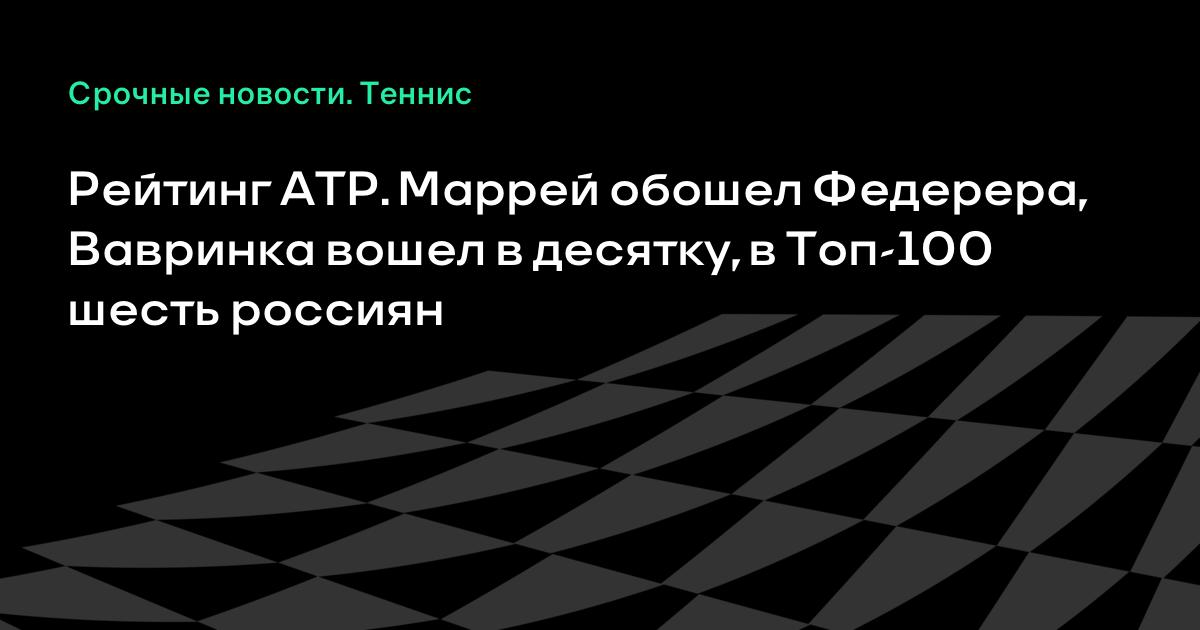 Рейтинг АТР. Маррей обошел Федерера, Вавринка вошел в десятку, в Топ-100 шесть россиян