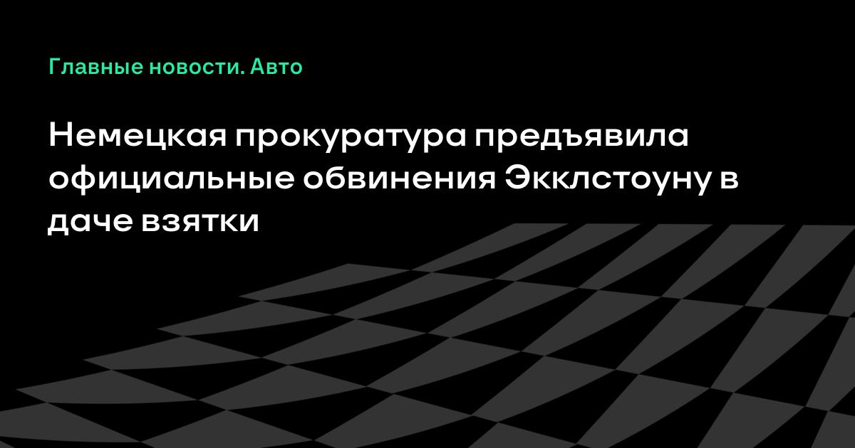 Немецкая прокуратура предъявила официальные обвинения во взяточничестве промоутеру «Формулы-1» Берни Экклстоуну, сообщает Suddeutsche Zeitung. Экклстоуна обвиняют в даче взятки бывшему немецкому банкиру Гехрарду Грибковски при продаже коммерческих прав на «Формулу-1» в 2006 году. При этом обвинения усугубляются тем, что Грибковски являлся государственным должностным лицом.