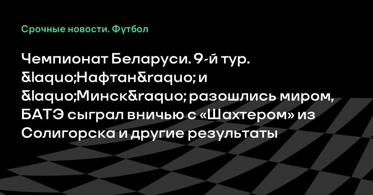 Чемпионат Беларуси. 9-й тур. «Нафтан» и «Минск» разошлись миром, БАТЭ сыграл вничью с «Шахтером» из Солигорска и другие результаты