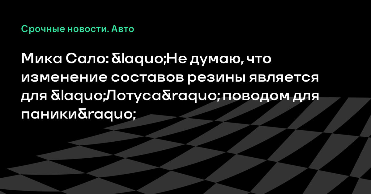 Мика Сало: «Не думаю, что изменение составов резины является для «Лотуса» поводом для паники»