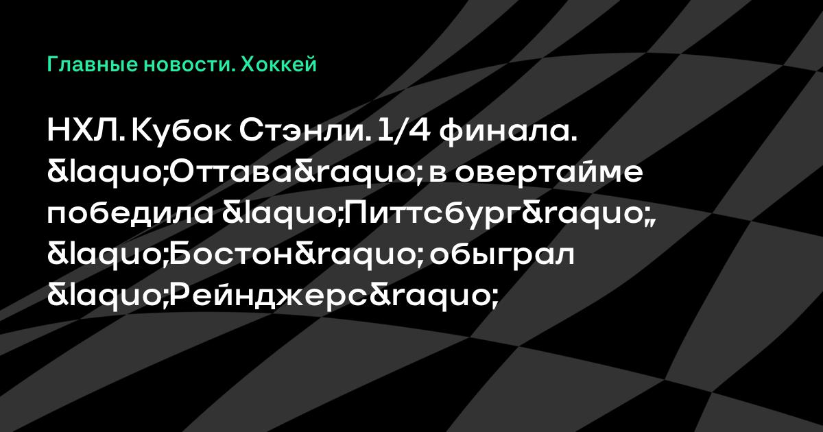 НХЛ. Кубок Стэнли. 1/4 финала. «Оттава» в овертайме победила «Питтсбург», «Бостон» обыграл «Рейнджерс»