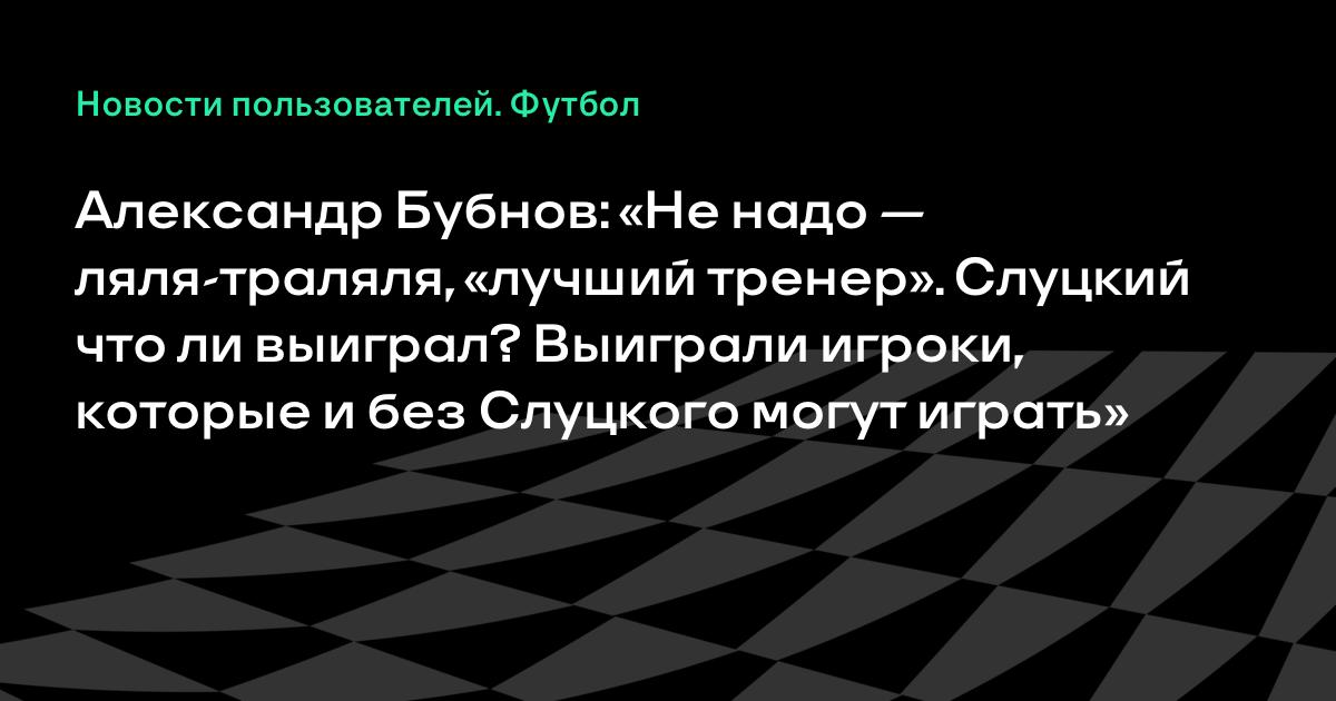 Не надо — ляля-траляля, «лучший тренер». Если не улучшать ситуацию, то сегодняшняя победа может обернуться поражением. А Слуцкий что ли выиграл? Выиграли опытные игроки, которые и без Слуцкого могут играть, — заявил Бубнов.