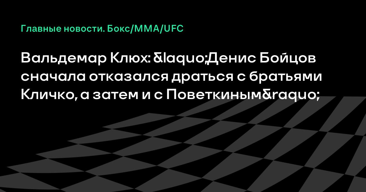 «У нас была конкретная договоренность с управляющим директором Klitschko Management Group Берндтом Бенте, — признался Клюх корреспонденту «Взгляда». — Дважды были готовы контракты на бой. Сначала Бойцов должен был драться против Виталия Кличко 8 сентября 2012 года в Москве. Считаю, что это был интересный вариант для Дениса — выступить перед соотечественниками, заработать хороший гонорар. Но Бойцов сделал вид, что заболел, а мы его вынуждены были поддержать. На самом же деле он просто не захотел драться с Виталием».