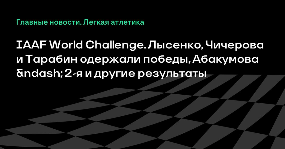 IAAF World Challenge. Лысенко, Чичерова и Тарабин одержали победы, Абакумова – 2-я и другие результаты
