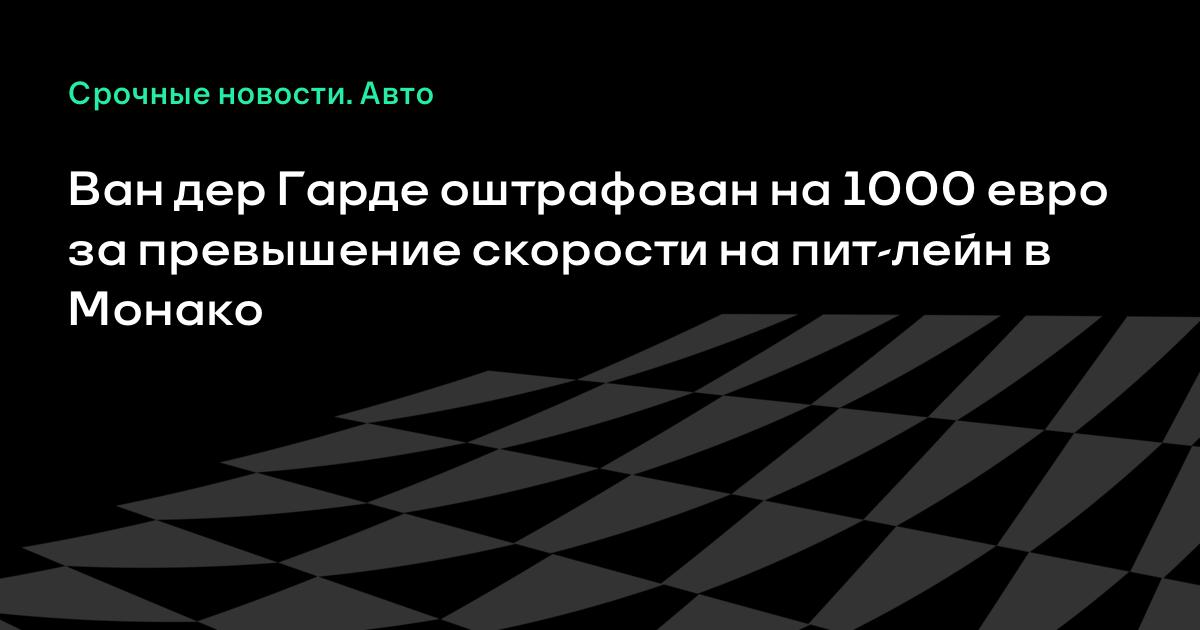 Ван дер Гарде оштрафован на 1000 евро за превышение скорости на пит-лейн в Монако
