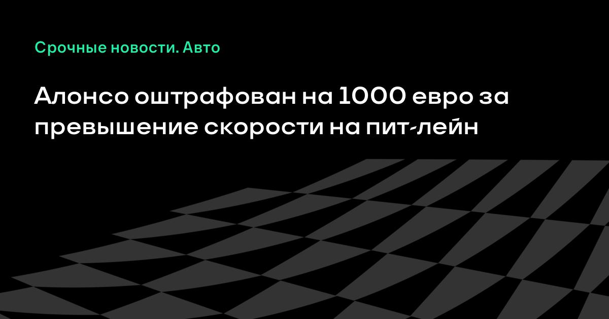 Стюарды Гран-при Монако приняли решение оштрафовать пилота «Феррари» Фернандо Алонсо на 1000 евро за превышение скорости на пит-лейн во время сегодняшней квалификации, сообщает журналист Адам Купер.