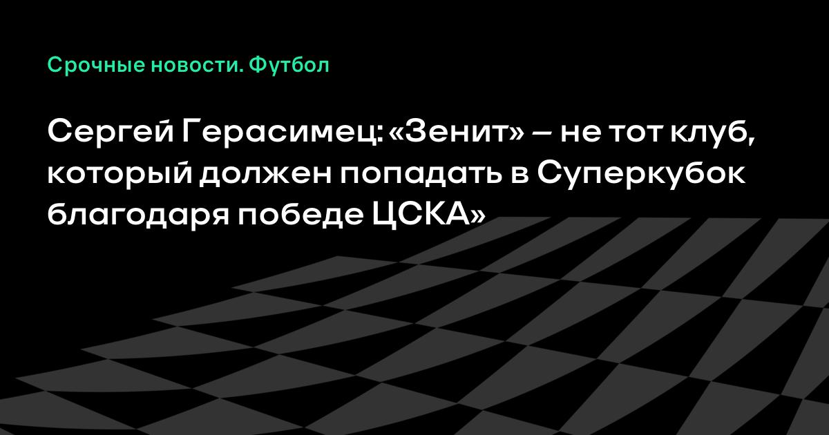Сергей Герасимец: «Зенит» – не тот клуб, который должен попадать в Суперкубок благодаря победе ЦСКА»