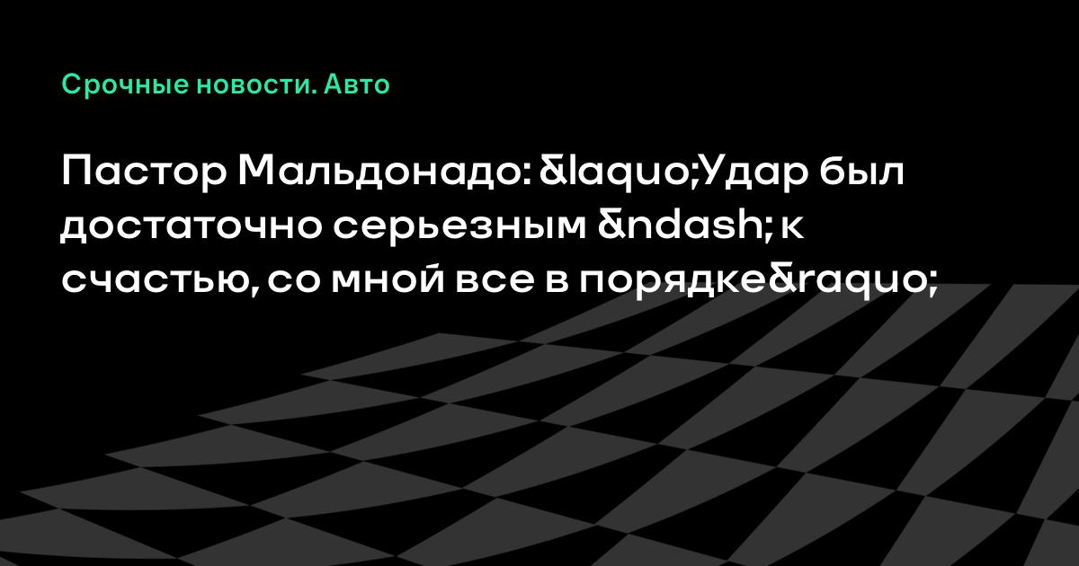 Пастор Мальдонадо: «Удар был достаточно серьезным – к счастью, со мной все в порядке»