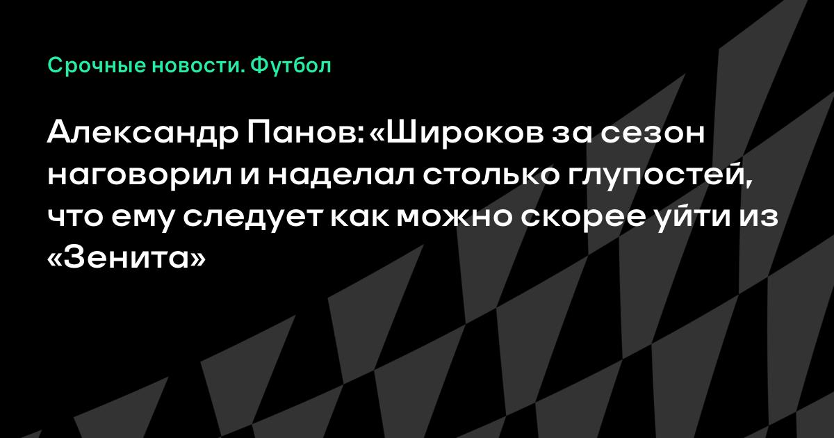 Александр Панов: «Широков за сезон наговорил и наделал столько глупостей, что ему следует как можно скорее уйти из «Зенита»