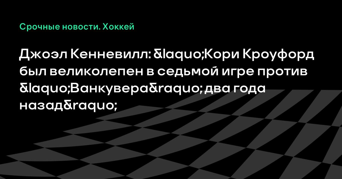 Джоэл Кенневилл: «Кори Кроуфорд был великолепен в седьмой игре против «Ванкувера» два года назад»