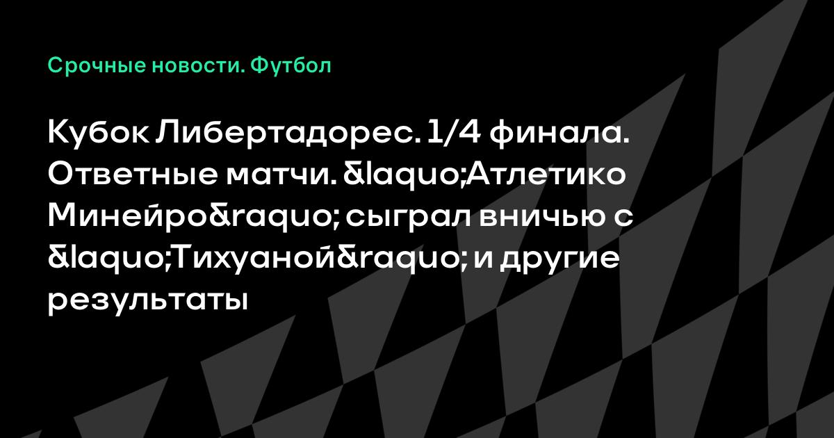 Кубок Либертадорес. 1/4 финала. Ответные матчи. «Атлетико Минейро» сыграл вничью с «Тихуаной» и другие результаты