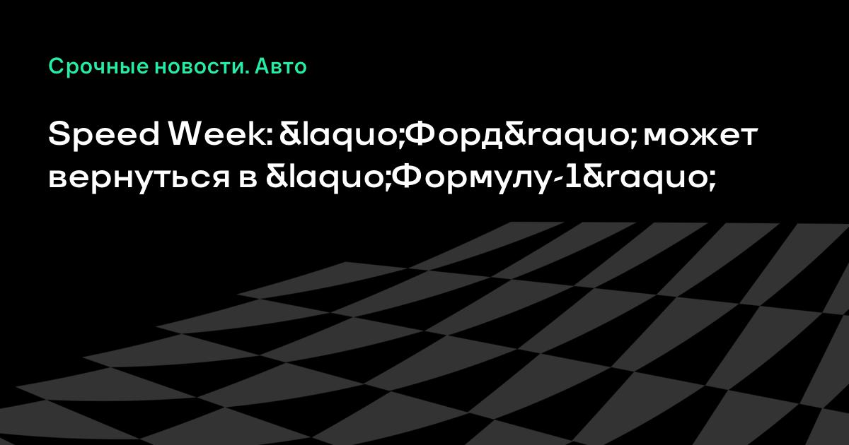 Speed Week: «Форд» может вернуться в «Формулу-1»